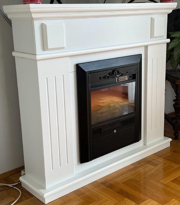 Električni kamin, lijepog bijelog dizajna, dimenzije D׊×V = 26×109×100 cm, s dvije funkcije zagrijavanja, s daljinskim upravljacem. Malo koristen, kao nov.