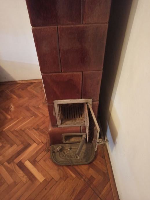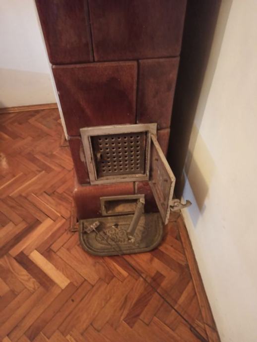 Peć je rastavljena, a svi dijelovi (kaljevi, željezna vratašca, rešetke...) nalaze se na jednom mjestu.