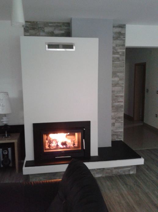 Kamin spojen na centralno grijanje. Ugrađeno ložište je proizvod Termotehnike