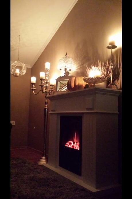 prekrasan kamin , na struju , može se postaviti gdje god želite ,ima funkciju hlađenja , ujedno može služiti i samo kao dekor bez da grije , daljinski upravljač , pojačavanje i smanjivanje svijetlosnog efekta ...