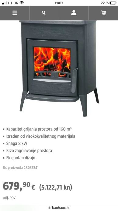 Odlican kamin za grijanje na drva za prostor do 160m2.
