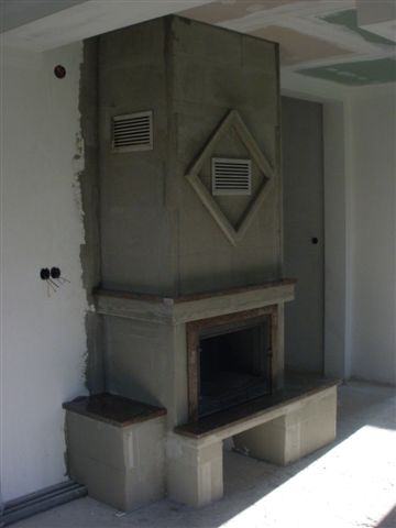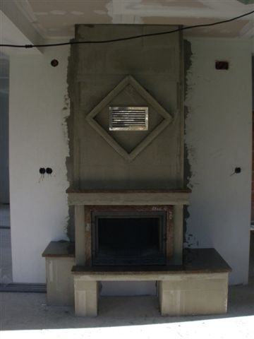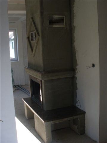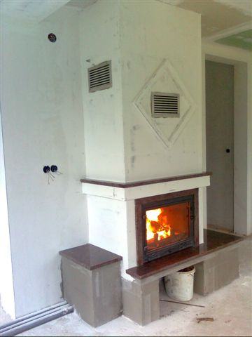 sobni kamin jačine 8 - 24 kw . Na policama je ugrađen kamen Multicollor Bolivari