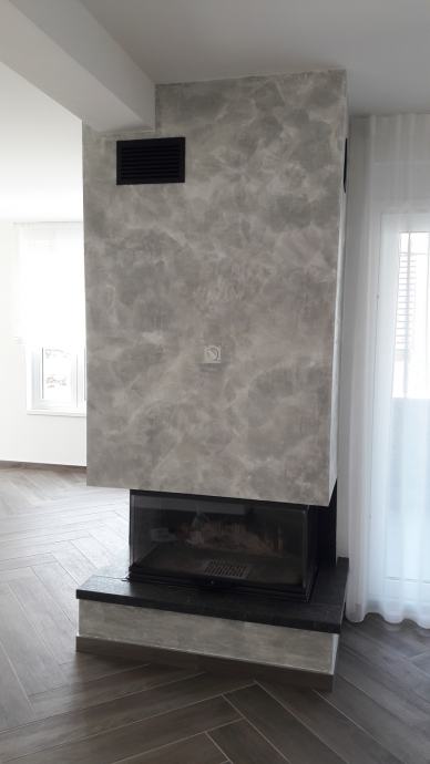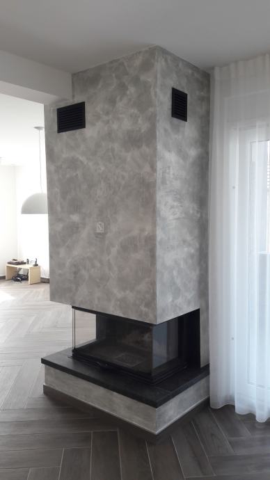 Kamin sa tri ostakljene strane i podiznim mehanizmom za otvaranje vrata.