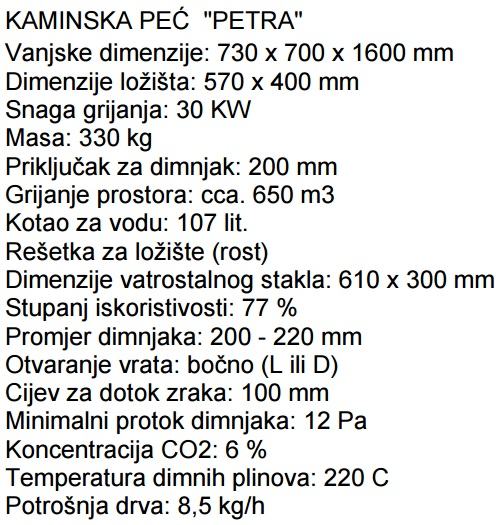 Proizvod TERMOTEHNIKA, KAMINSKA PEĆ "PETRA"