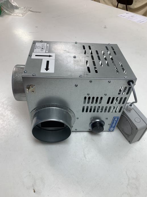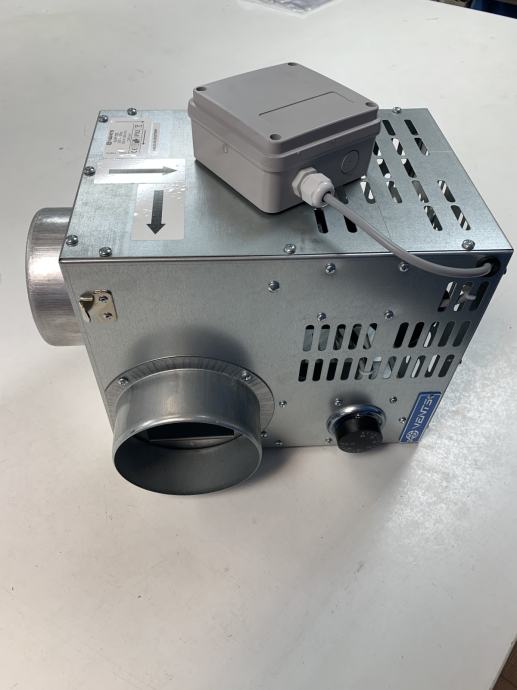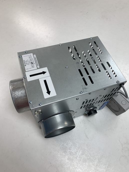 Služi za izvlačenje toplog zraka iz kamina i distribuciju toplog zraka u prostorije. Kapacitet ventilatora iznosi 400m3/h.