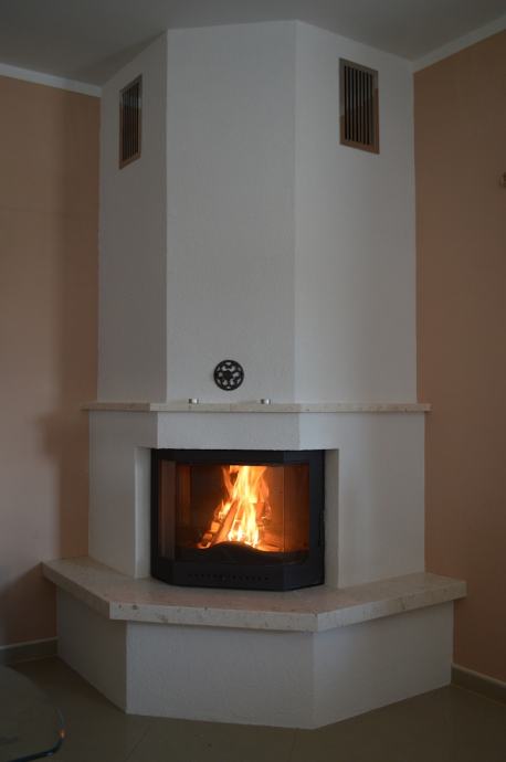 Kamen za klupicu ispod i iznad ložišta je Vapnenac Plano, dok je kamin završen sa silikatom 1 - 1,5 granulacije.