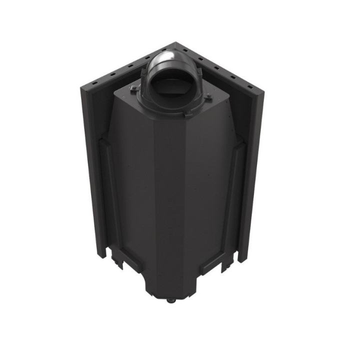 Sustav ventilacije trostruke komore za izgaranje: primarni zrak – usmjeren na ploču na kojoj se izgaranje odvija; sekundarni zrak se dovodi kroz otvore na stražnjoj stijenci. Dodatno, umetak koristi sustav čistog stakla (zračna zavjesa).