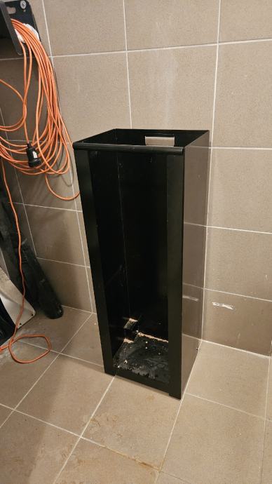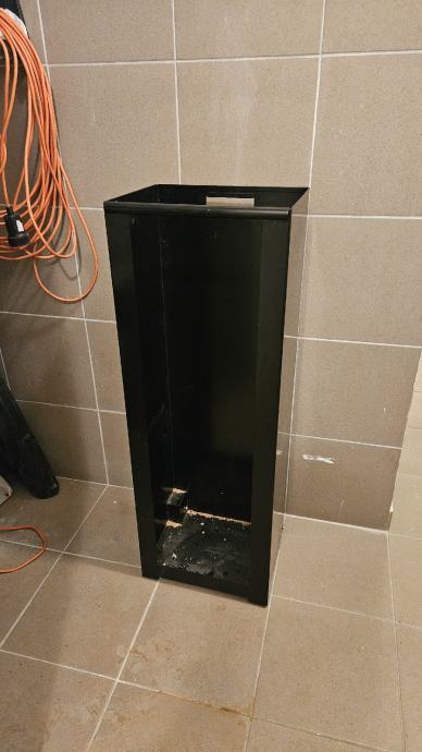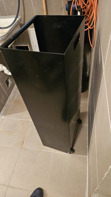 Praktički nekorišteni nosač za drva na dva kotačića. Jednu sezonu je stajao u stanu i u njemu su stajale kutije briketa.
