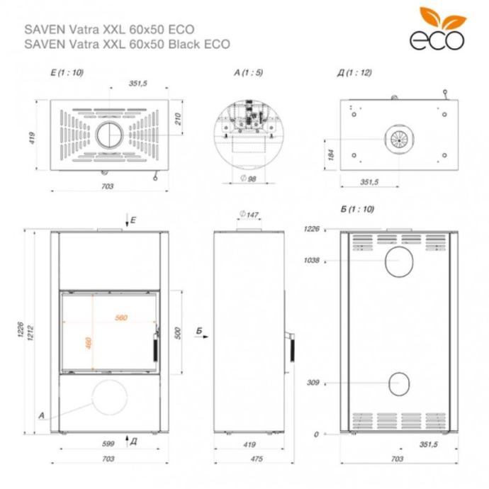 Peć na drva samostojeća SAVEN VATRA XXL 60X50 BLACK ECO (10,2 Kw)
