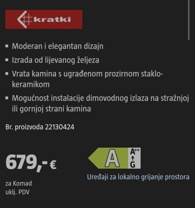 Prodajem kamin cijena 180 € stanje dobro