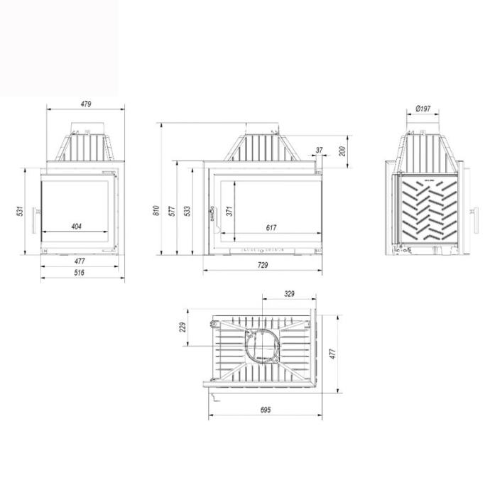 Ovo je kutni kamin s BS vratima (kombinirano staklo). Zahvaljujući ovom rješenju možete uživati u vatri s dvije strane u dvije prostorije u isto vrijeme. Idealno za spajanje soba.