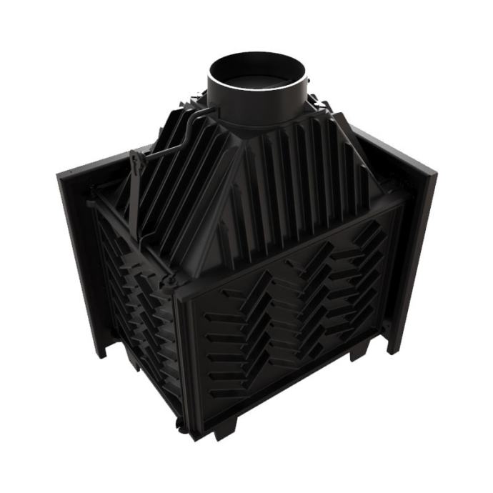 Vrata umetka imaju modernu ručku. Njegova posebna perforirana struktura uzrokuje prirodno hlađenje. Praktična ručka jamči udobno otvaranje kamina.