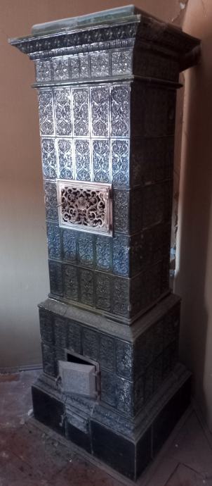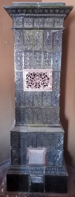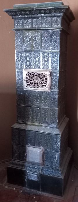 Zeleni kamin na drva, star više od 120 godina, smaragdne boje.