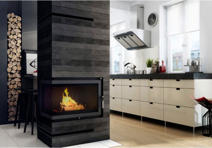 Zuzia 15 kw-pw-bs-kamin za centralno grijanje odlikuje prednje bočno i lijevo čisto staklo na vratima bez metalne pregrade za ambijentalno rasprostiranje ugođaja vatre pod kutem od 270 stupnjeva bez sjene.