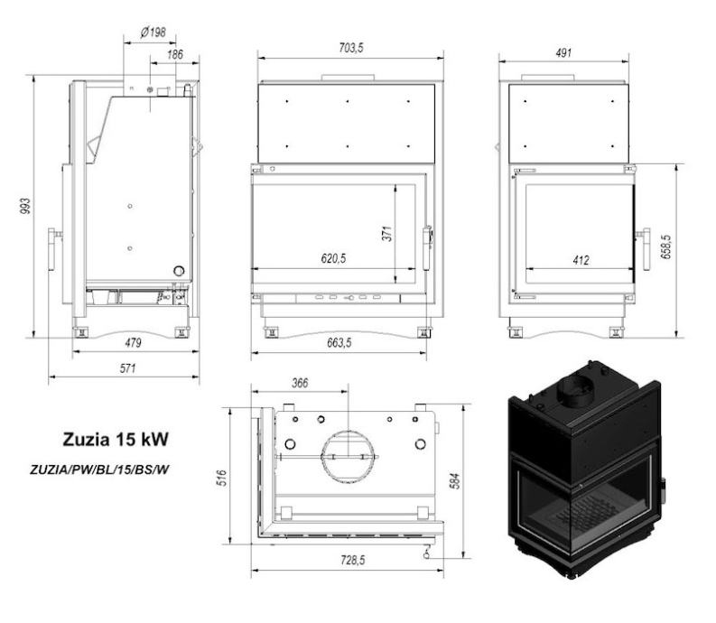 Kamin za centralno grijanje Zuzia 15 kw-pw-bs izrađen je u skladu sa EN 13229 normom i CE certifikatom. Kao rezultat toga, ovaj kamin je zasigurno izvrstan izbor koji će pružati pouzdan rad bez neugodnih iznenađenja. Upravljanje primarnim dovodom zraka kroz donji regulator te standardno ugrađenim regulatorom dimnog preklopa omogućava jednostavno podešavanje gorenja i dugo održavane žara i temperature grijanja. Kamin je predviđen za grijanje do 160 kvadrata (ovisno o izolaciji i obliku stambenog prostora) a raspon snage grijanja kreće mu se od 8 do 19 kilovata. Kapacitet kotla za vodu je 38 litara snage od 11 kW. Sa pet godišnjim jamstvom kamin za centralno grijanje Zuzia 15 kw-pw-bs daje garanciju kvalitete i pouzdanosti.