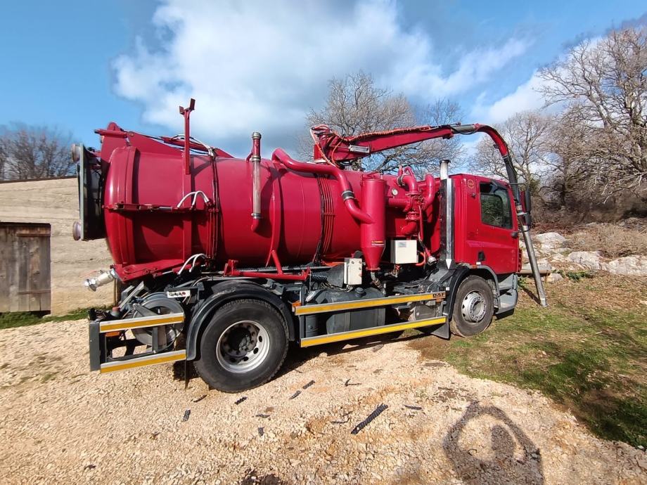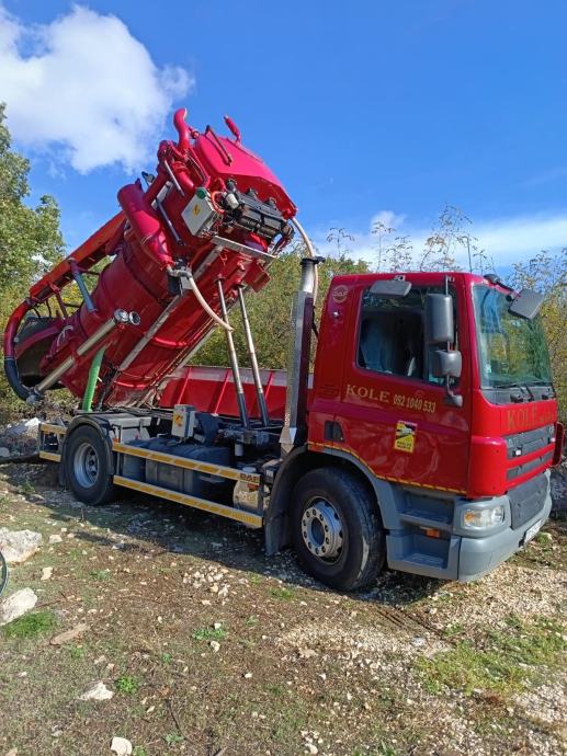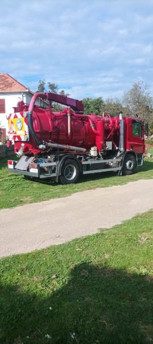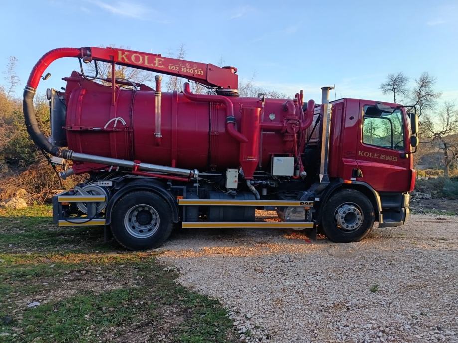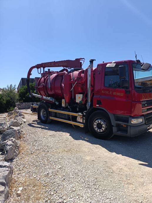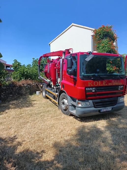 Prodaje se DAF CF autofekalac(kontakt:+385 92 1040 533). Prozveden 2006. godine u vrlo dobrom stanju sa prijeđenih 128 000km. Zapremnina bačve je cca. 8,800L te ima mogućnost otvaranja zadnjih vrata i podizanje bačve do 90stupnjeva za lakse čišcenje i održavanje bačve(sve na hidrauliku). Ima vakum pumpu SAMSON koja radi na principu vodenog prstena te ima vodeno halđenje i radi bez ulja. Također ima kran ili ruku za crpanje što je pogodno temo gdje je nepristupačno npr. zid,ograda itd.. Napravljen je veliki servis ulja u motoru,hidraulici,nove gume, novi akumulatori,nove cijevi za usisavanje dužine 30m,kamera za vožnju unatrag,ručni mjenjač sto je bolje za radni kamion. Dužina kamoina je 7m što je pogodno za uske prostore i ulice. Iznimno mali potrošač cca. 20L/100km. Sve radi ispravno i kamion je u radu svaki dan.Registriran do 22/10/2026. godine.