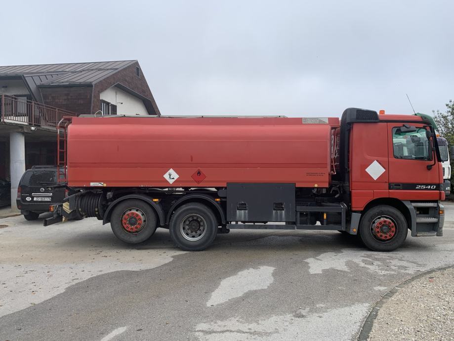 Mercedes 2540 sa orginalnom alu Esterer nadogradnjom 11000+9000 lit, pumpom za istakanje i usisom, gornje i podno punjenje, malo crijevo 30m, novi volumetar(6 istakanja),štampač,spoj crijeva za prikolicu,klima, registriran,tehnički odličan, sa garantiranim km.