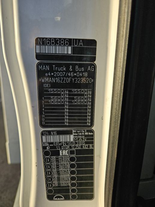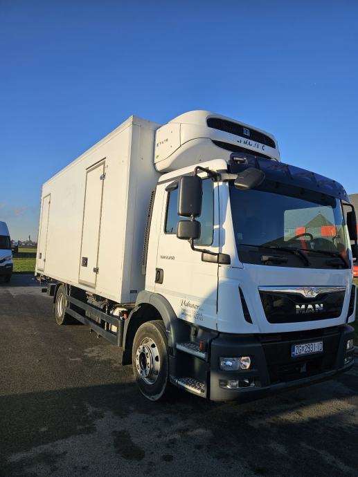 MAN 12.250 BL,model 2015,dimenzije utovarnog prostora 6200x2480x2200,utovarna rampa Dholandia 1500 kg,rashladni uređaj Thermo king T-1000R,bočna vrata,bočna vrata,dva isparivača sa mogučnost dva režima rada sa pomičnom pregradom,automatski mjenjač,automatska klima.Vozilo je redovito servisirano kao i rashladni uređaj.
