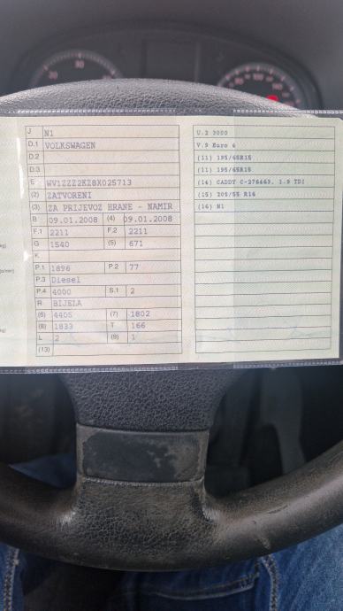 Prodajem rabljeno vozilo: Vw Cady 1.9 tdi HLADNJAČA