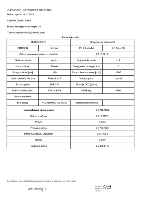 Jumper 2.0 BlueHDi, godina proizvodnje 2019., broj šasije