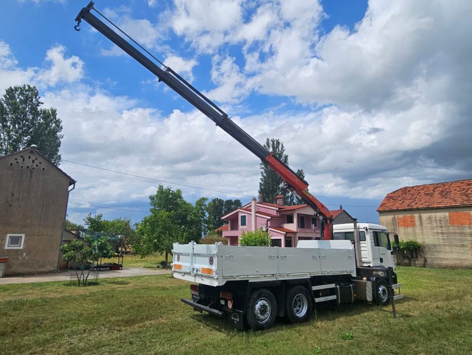 Man kiper[samo straga] sa kranom plafinger 16502 sa izvodima za grajfer i rotor, euro koš 12 euro paleta nosivost 12700kg