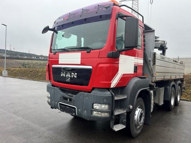 MAN 33.440 6x4 BB, dvostrani kiper s kranom na kraju sanduka, HIAB 166 ES-4 , daljinski , rotator, grabilica, nosivost krana 2,4m-6500 kg, 4,3 m-3700 kg, 6,1 m-2500 kg, 8,1 m-1840 kg, 10,1 m-1440 kg, 12,3 m-1160 kg )