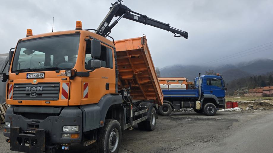 MAN TGA 18310 4x4, kiper, kran, daljinske komande za kran, nove gume, apsolutno bez ulaganja, sanduk u prvoj boji nigdje ostecen, registriran do 3/27