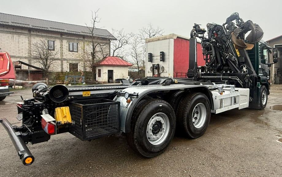 Prodaje se MAN TGS 26.500 6X2-2 BL abrol kiper za kontejnere do 6,5 m i kran HIAB J1620RZT.