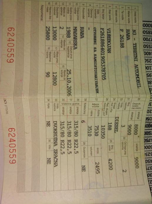 Prodajem kamion Raba Turbo F26 250 ks troosovinac kiper, mieller kiper u izvrsnom ispravnom stanju, zadnja stranica se otvara na zrak automatski, fuller mjenjač 4 brze 4 spore rikverc i C brzina, kamion je upravo servisiran filteri ulja nafte zraka i ulje, spreman za rad odjavljen, papiri uredni, u cijeni je uključen još jedan motor sa svim agregatima spreman za ugradnju, sve ostale informacije na broj 0989183128 Srećko