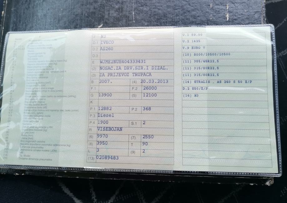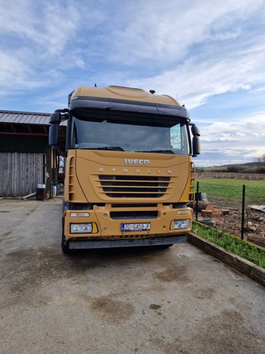 IVECO STRALIS AS 260 ŠUMAR, u ispravnom stanju, dizalica Penz, dupli teleskop. Uz kamion dolaze i škare za trupce jačine 5600 kg. Molim zvati na 091 564 8781