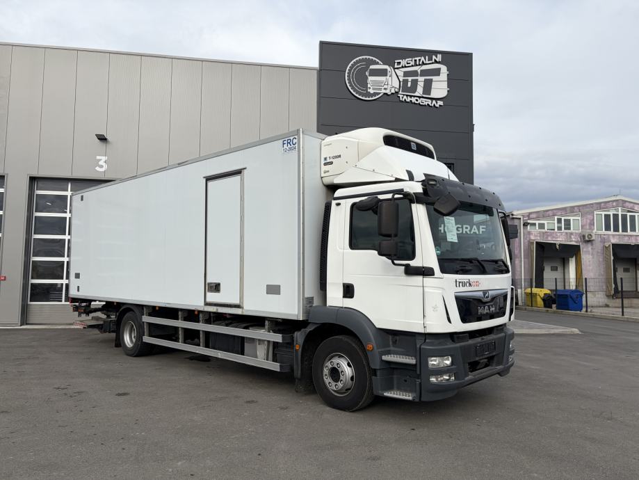 MAN 16.290 LL hladnjača, EZ 2/2019, nadogradnja Kiesling, dimenzije utovarnog prostora 7800x2460x2200, utovarna rampa Dholandia 1500 kg,rashladni uređaj Thermo king TK T-1200R, bočna vrata, tri isparivača ( mogućnost tri režima unutar komore, mogućnost micanja pregrada ), automatski mjenjač, klima, nosivost 6.690 kg, vozilo redovito servisirano i održavano.