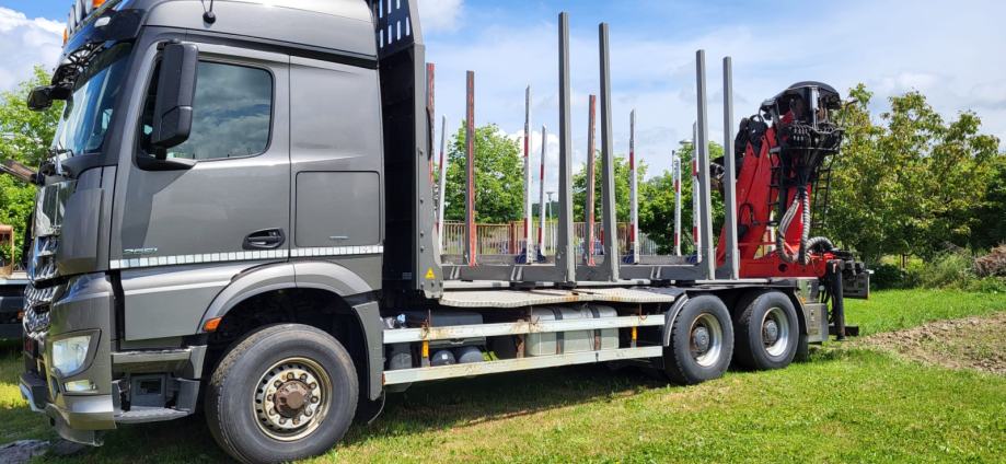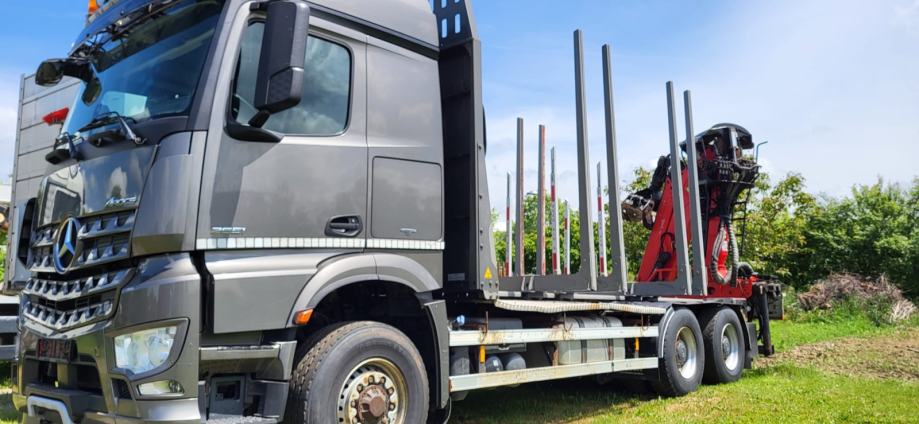 Mercedes-Benz Arocs 2651, šumar, 6 x 4 i dodatno prednji pogon koji se uključuje prema potrebi.