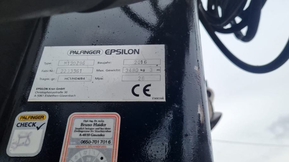 Dizalica EPSILON M120Z96 sa dva teleskopa i kabinom,federi napred i nazad,automatski mjenjač sa kvačilom,dužina utovarnog prostora 6,50m,retarder,