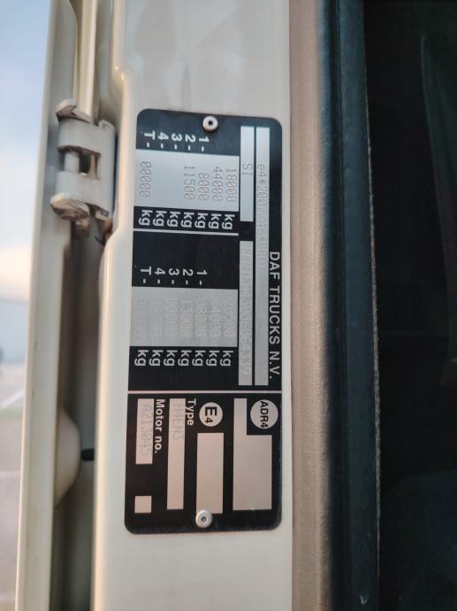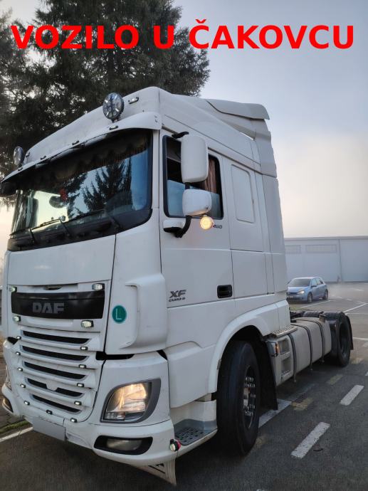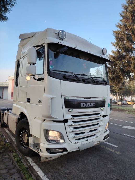 DAF XF 460 FT, 4x2, u prometu od 05/2015, Euro6, AdBlue, ABS, EBS, jastuci straga, motorna kočnica, automatik, 2x tank, tempomat, klima, webasto, 2 kreveta, frižider, radio CD, krovni otvor, NDM 18.000 kg, masa praznog vozila 7.490 kg, nosivost: 10.510 kg, gume 315/70 R22,5. VIN: XLRTEH4100G064339
