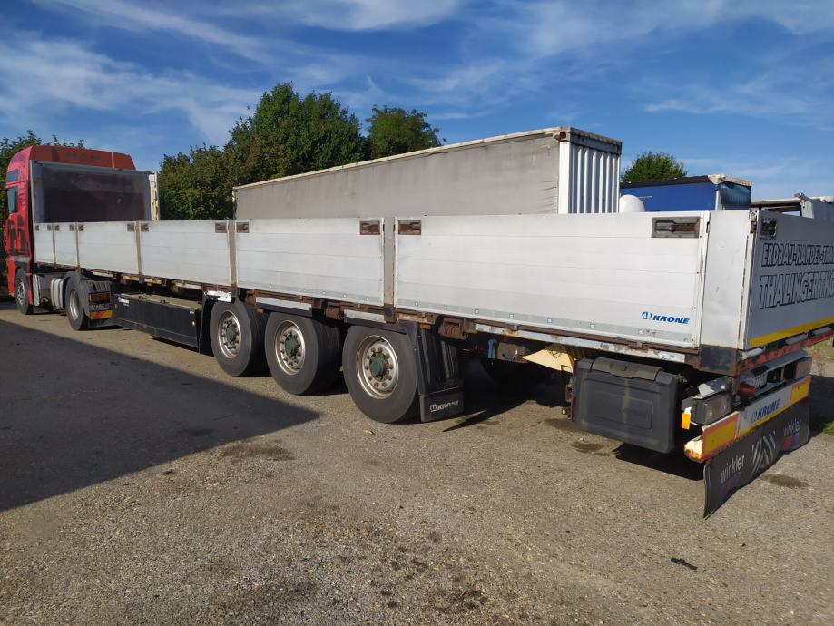 Prikolica krone građevinarka(pojačana šasija) 2014 g...reg 08/2026...zakretna zadnja osovina(swenk)...ima table na izvlačenje sa gabaritima za vangabaritni teret...španeri sa sajlom za teške terete...paletar...stranice se mogu skinuti...gume..kočnice...sve ispravno...zamjenjeni amortizeri...zadnji gibnji novi..sve što se može vidjeti na prikolici...