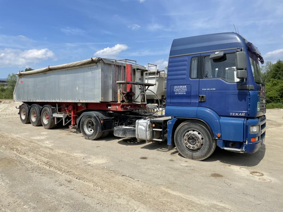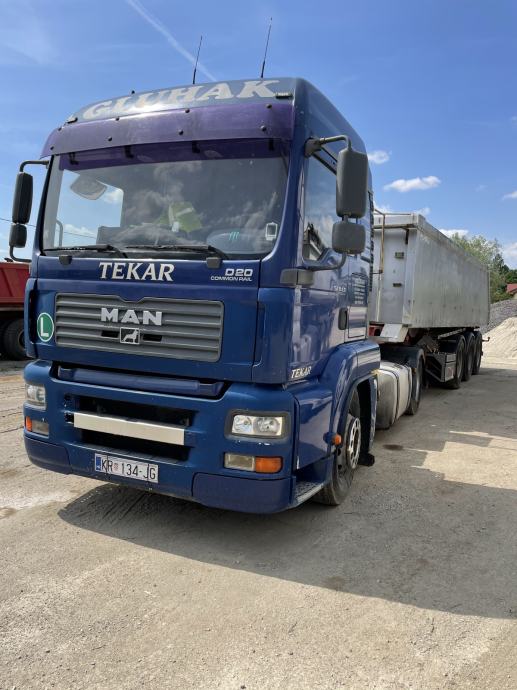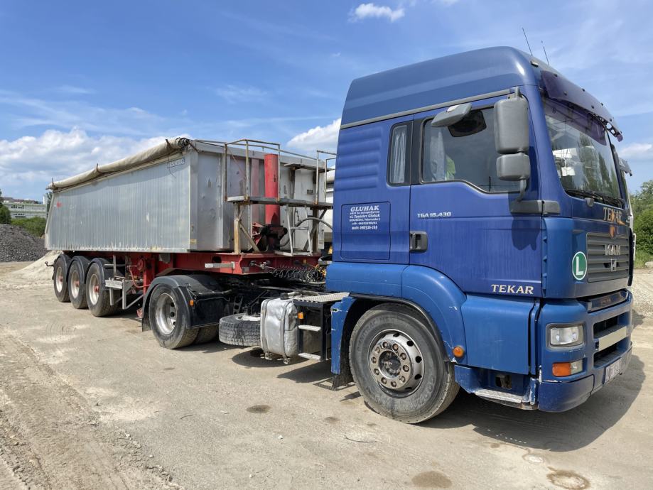 Prodajem zajedno Man tga430 i poluprikolicu Fligel 2000.g. Registrirano do 6.mj. 2023.Moze i pojedinacno. Gume na 70-80 %.Kamion i prikolica su u stalnom radu. Cijena nije FIKSNA.Sve info na 098326163