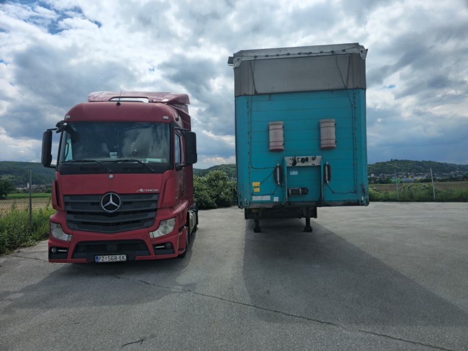 Prodajem tegljač MERCEDES-ACTROS 1842, registriran do 16.06.2026., promijenjena prva osovina i pogon diskovi i pločice, boce od zraka i izmijenjena sva ulja motor i diferencijal, nove gume. Šlepa SCHMITZ, mega, coil korito, utovarni prostor 3m, pocinčana, na sve tri osovine promijenjeni svi diskovi i pločice, amortizeri, jastuci i ležajevi s glavčinom ,nove gume godina proizvodnje 2011, registriranu do 25.06.2026. Cijena za komplet 28.000,00 eura