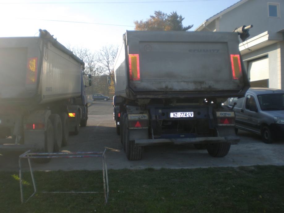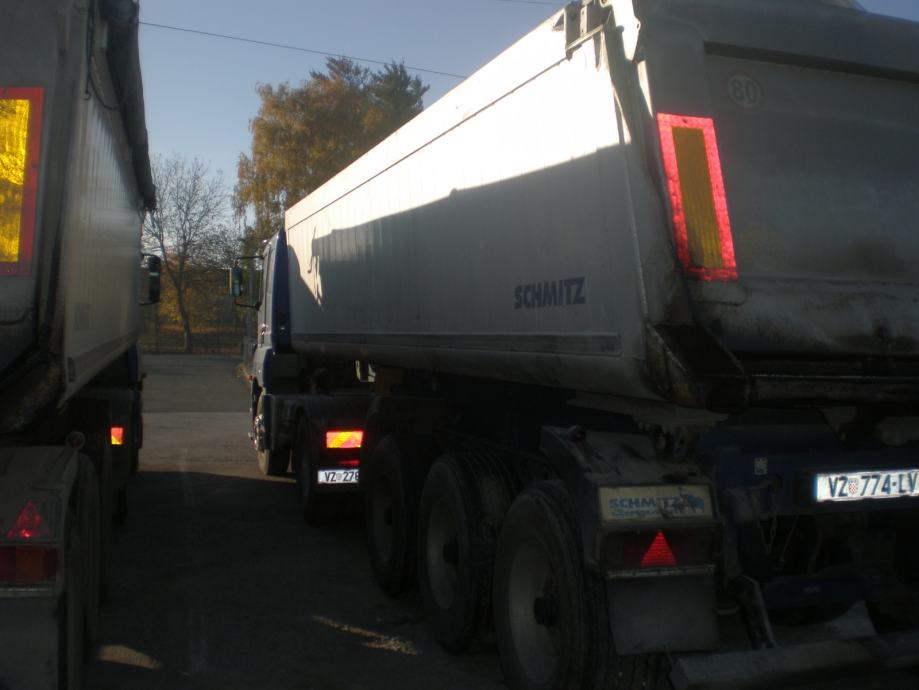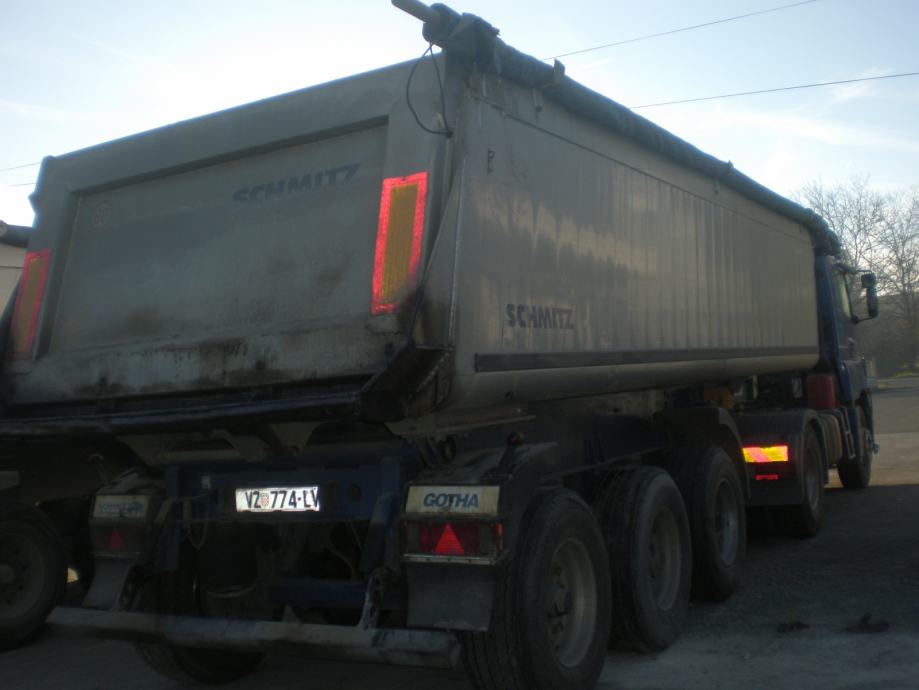 poluprikolica kiper Schmitz ski 24 u dobrom stanju gume registrirana do 07/16 prednja i zadnja osovina 80 % srednja lošije, nove pločice i diskovi,reparirane čeljusti , novi seleni u vagama, svi zračni jastuci izmjenjeni, novi abs senzori i čitači na obje osovine cijena 10000 €