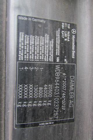 Mercedes-Benz Arocs 1863 4x2, u prometu od 02/2018, Euro 6, ABS, EBS, ESP, jastuci straga, kiphidraulika, retarder, automatik, tempomat, Lane Asist, xenon svjetla, alu felge, klima, webasto, spavaća kabina, frižider, grijanje sjedala, radio cd/bt, NDM 18.000 kg, masa praznog vozila 8.061 kg, visina sedla 1280 mm, međuosovinski razmak 3600 mm, gume: 385/65 R22,5 ; 315/80 R22,5. VIN: WDB96440310237257