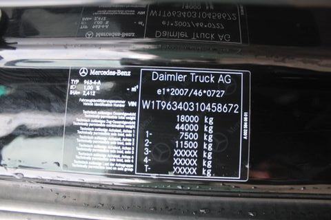 Mercedes Benz Actros 1853 BL, 4x2, Stream Space kabina, u prometu od 07/2020, Euro6, AdBlue, ABS, EBS, ESP, jastuci straga, retarder, automatik, 2x tank ( 820 + 430 L), digitalni taho, Active Brake Assistent, adaptivni tempomat (ACC), automatska klima, webasto, 2 kreveta, frižider, radio CD/Bluetooth/USB/SD, navigacija, grijanje sjedala, spojler kabine, NDM 18.000 kg, masa praznog vozila: 8.464 kg, međuosovinski razmak: 3.700 mm, gume 385/55 R22,5 , 315/70 R22,5. (cca 5 - 7 mm). VIN: W1T96340310458672