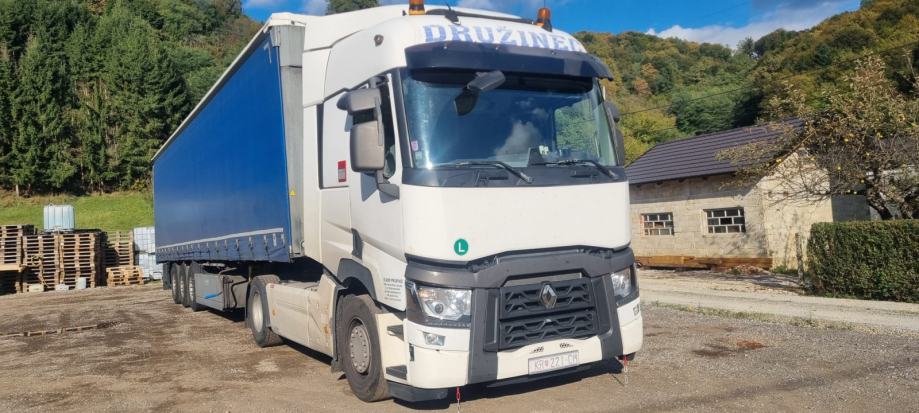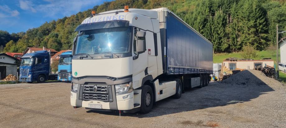 Renault T 480, 2014. godina, održavan 95% km vukao prikolicu s jednom osovinom, do 15t nosivosti.