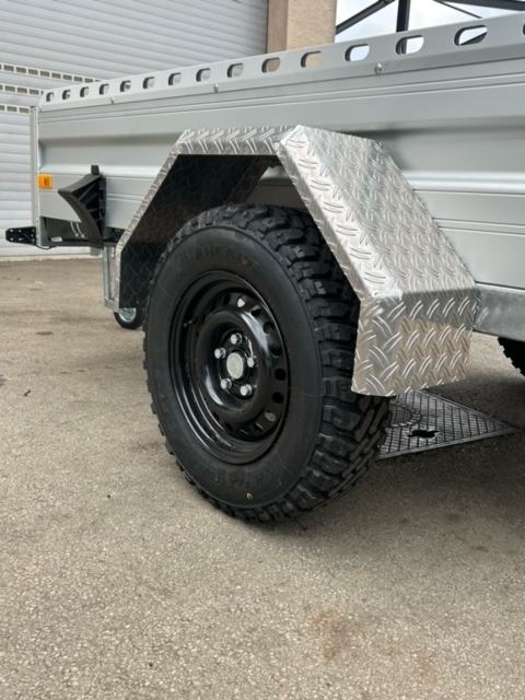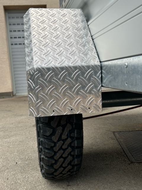 Siguran prijevoz izvan ceste: Terenske gume osiguravaju prianjanje izvan ceste i povećavaju terensku sposobnost prikolice. Bočna ograda omogućuje fleksibilnije pričvršćivanje tereta i može se koristiti za pričvršćivanje mreže ili cerade. Posebno otporni blatobrani izrađeni od aluminijske šahovske ploče ne samo da vizualno daju prikolici ono što je sigurno, već pružaju i najbolju zaštitu.