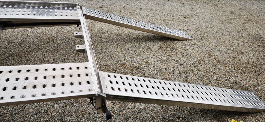 U cijenu uračunata: prikolica, vitlo, potporni kotač, navozne rampe alu 2 m, 2 kom, podmetač(kajle) za kotače.