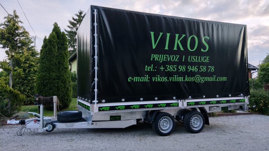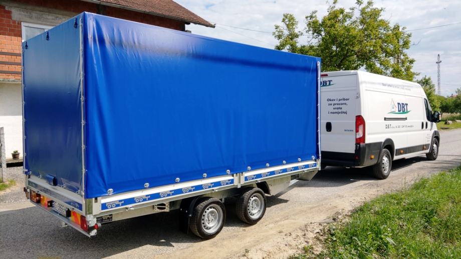 U cijenu je uračunata,prikolica,arnjevi i cerada,potporni kotač,rezervni kotač, naletna kočnica, kajle-podupirači