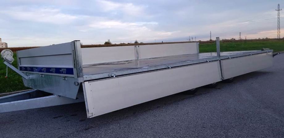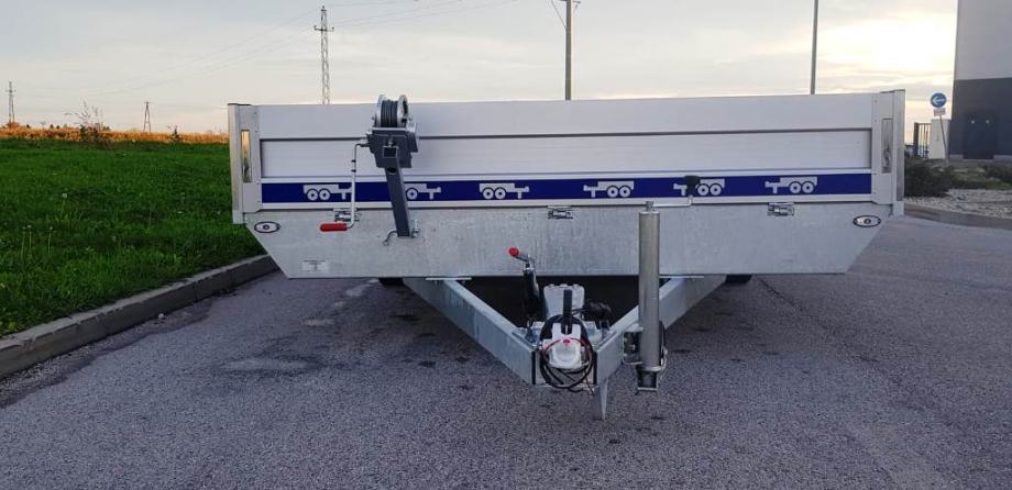 U cijenu je uračunata prikolica, potporni kotač, rezervni kotač, naletna kočnica, kajle-podupirači za kotače, amortizeri, vitlo, navozne rampe 2,5m dužine aluminijske, potporni stupovi na kraj prikolice