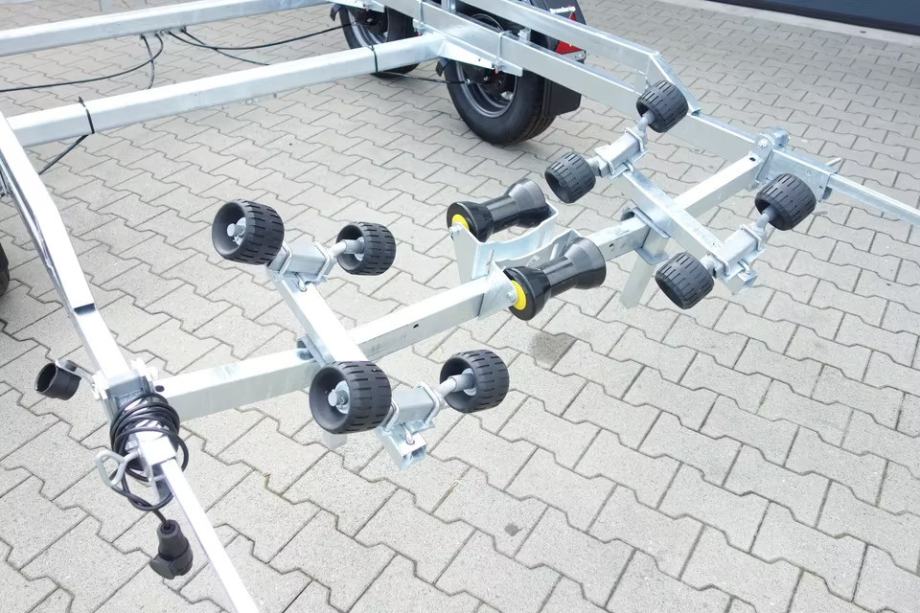 DxŠxV: 7450mm x 2210mm x 1400mm Dozvoljena max. težina (kg): 2500 Težina prazne prikolice (kg): 530 Max. težina tereta (kg): 1970 Namjena: Prijevoz plovila / prijevoz brodova, jet ski AS Prikolice Kapela 60, 22240 Tisno +385 098 816 434 info@as-prikolice.hr https://www.as-prikolice.hr