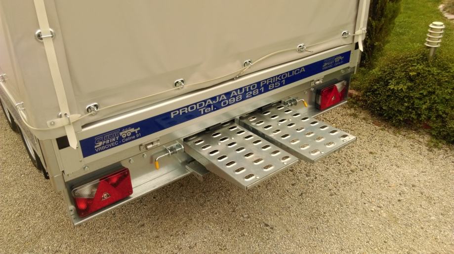U cijenu je uračunata, prikolica, potporni kotač ,rezervni kotač, naletna kočnica, kajle-podupirači za kotače, navozne rampe 2,5 m