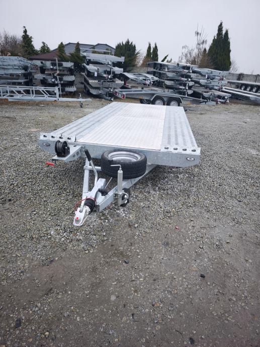 Prikolica za prijevoz automobila sa rampama i vitlom