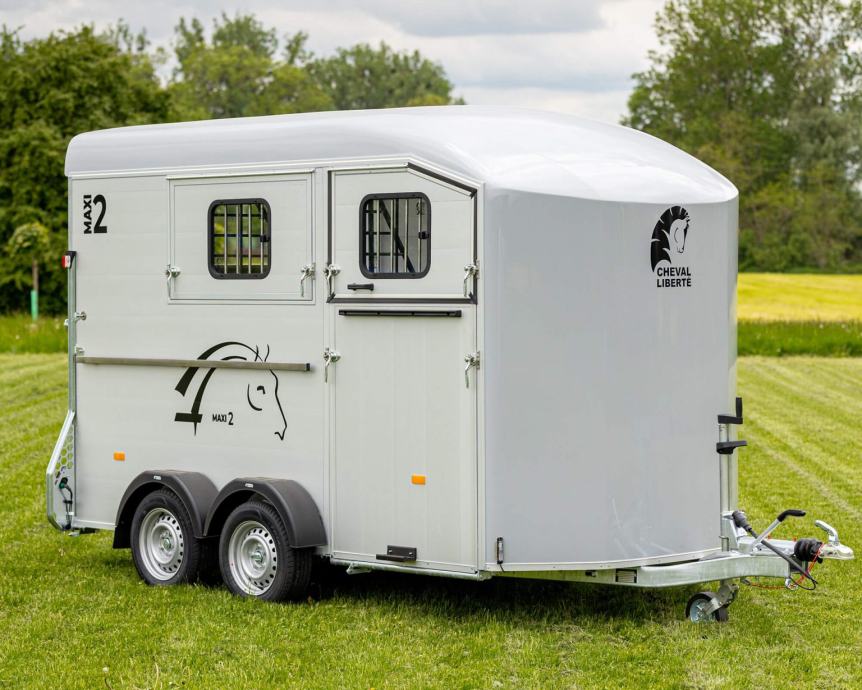 U ponudi je Cheval Liberté Maxi 2, dijagonalna prikolica za dva konja većih dimenzija, s dodatnim prostorom za manipulaciju i smještaj opreme. Ovaj model kombinira funkcionalnost, sigurnost i udobnost – idealan za profesionalne korisnike koji traže više prostora i fleksibilnosti.