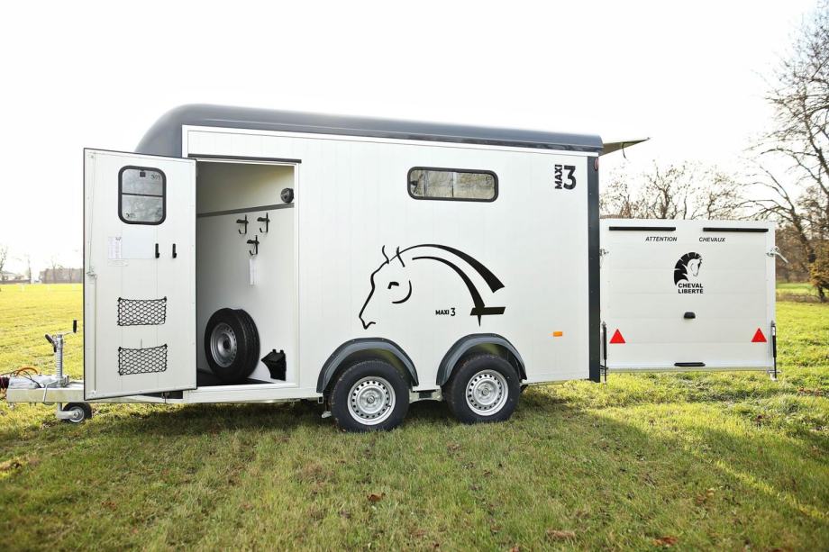 Cheval Liberté Maxi 3 – prostrana dijagonalna prikolica za 3 konja s velikom sedlarnicom!